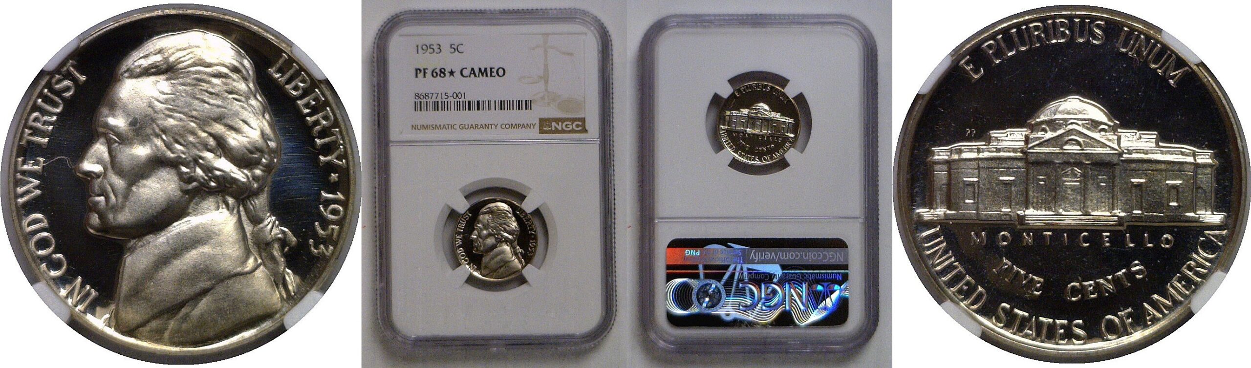1953 Jefferson Nickel NGC PF-68 Cameo Star