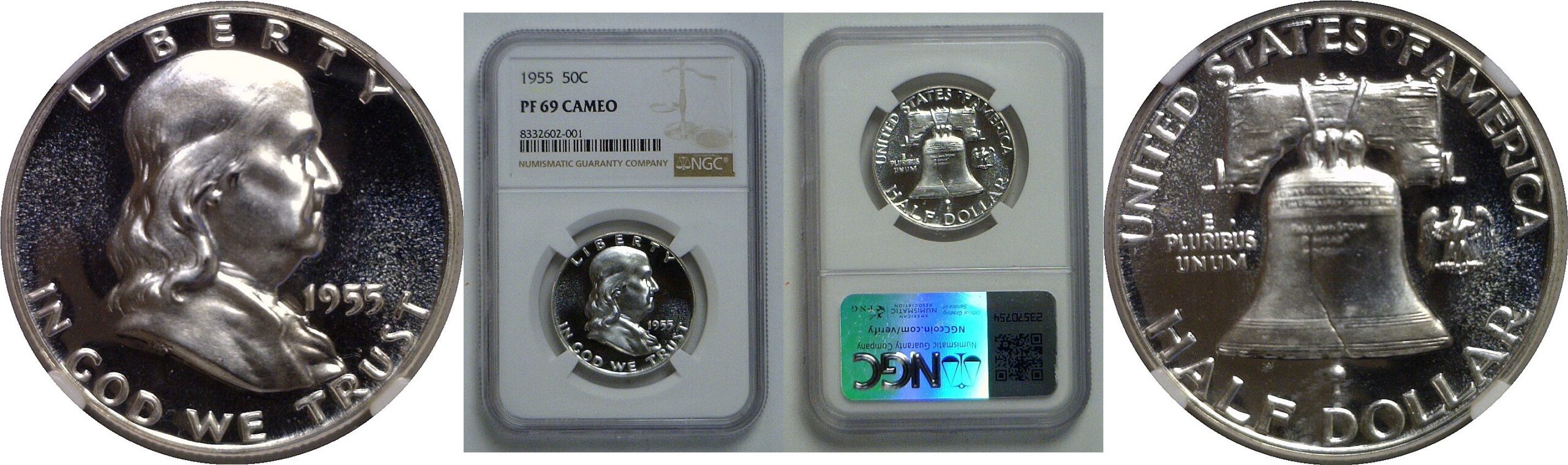 1955 Franklin Half Dollar NGC PF-69 Cameo
