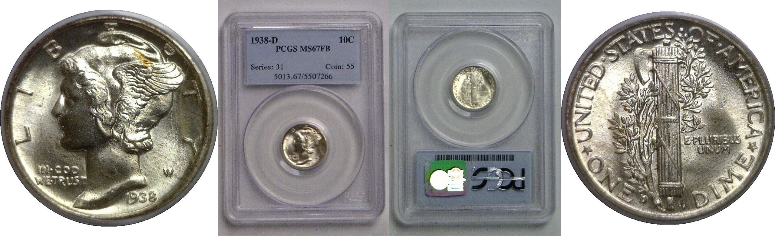 1938-D Mercury Dime PCGS MS-67 FB