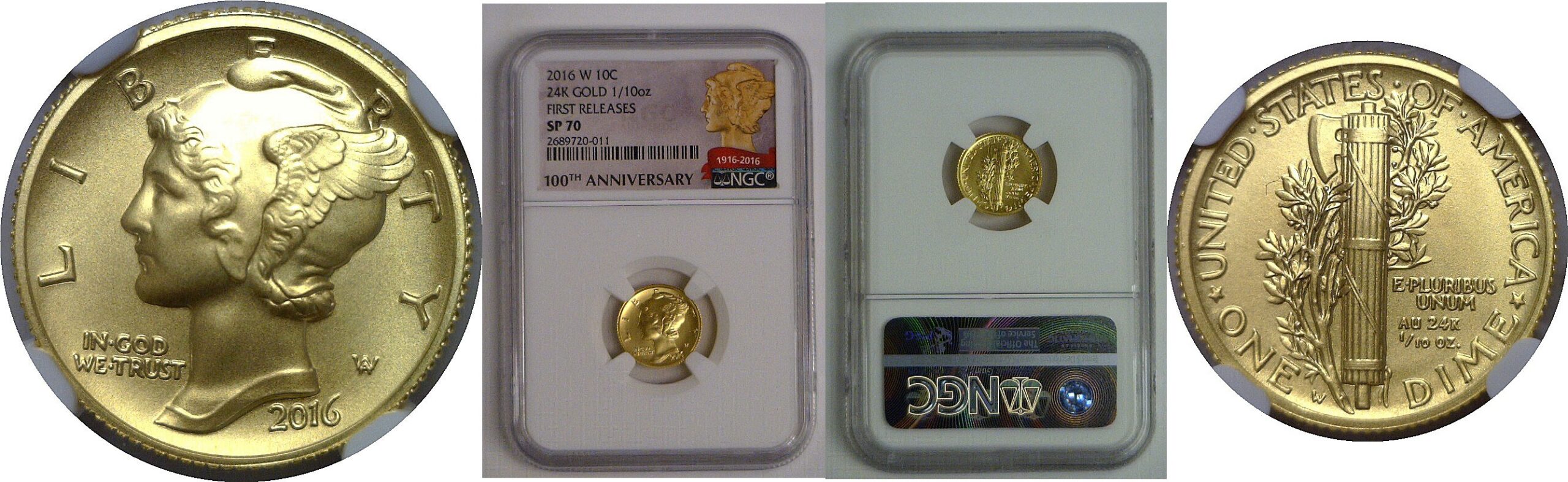 2016-W Gold Mercury Dime NGC SP 70 First Releases