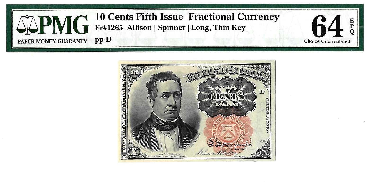 10 Cents Fifth Issue Fractional Currency Fr. 1265 PMG Choice UNC 64 EPQ