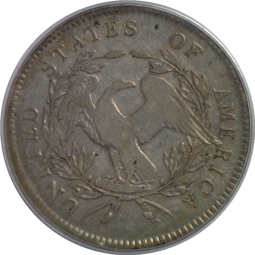 3 Leaves. A lovely example of the first U.S. silver dollar design. Choice surfaces display clear central detail with bold legends and stars, complemented by smooth, even wear and an attractive original gray patina. The eye appeal is exceptional as the typical adjustment marks and various other disturbances that plague this date are not present on this example. A historically important early federal issue and a cornerstone for any United States type set.