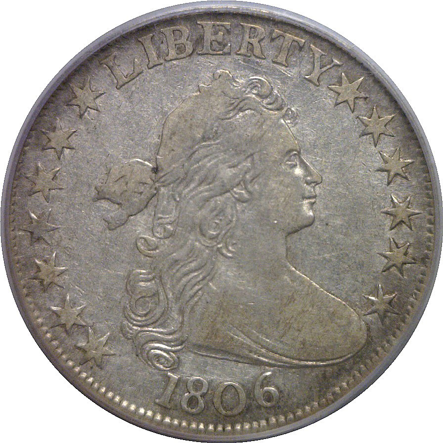 Overton 109. Pointed 6, No Stem. A pleasing mid-grade example of this popular early type, offering smooth surfaces with attractive light silver-gray patina. The strike is well-centered, with strong remaining detail in Liberty’s hair and the eagle’s wings. Even wear is complemented by minimal distractions, giving the coin a wholesome, problem-free appearance.
