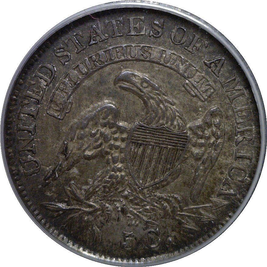 Small Date, Small 5c. Strong detail with attractive originality. Lustrous surfaces display warm golden-brown toning with deeper accents, while the strike is sharp for the issue, with clear hair detail and a well-defined reverse eagle.