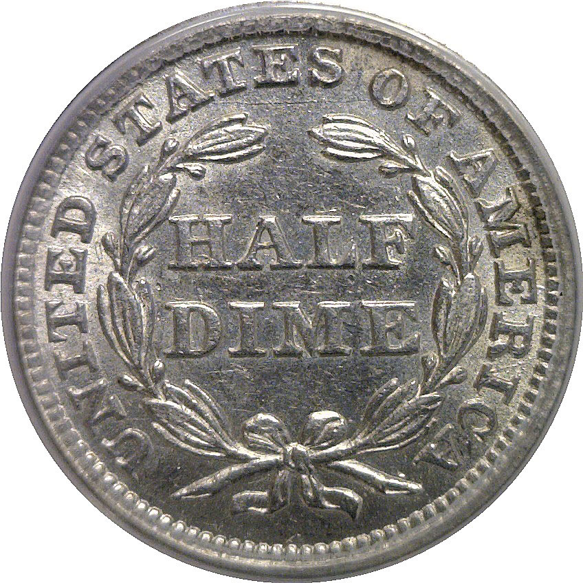 A pleasing early Seated Half Dime with light silver surfaces and sharp remaining detail throughout Liberty and the reverse wreath. Modest high-point wear confirms the AU53 grade, while the coin retains strong eye appeal.
