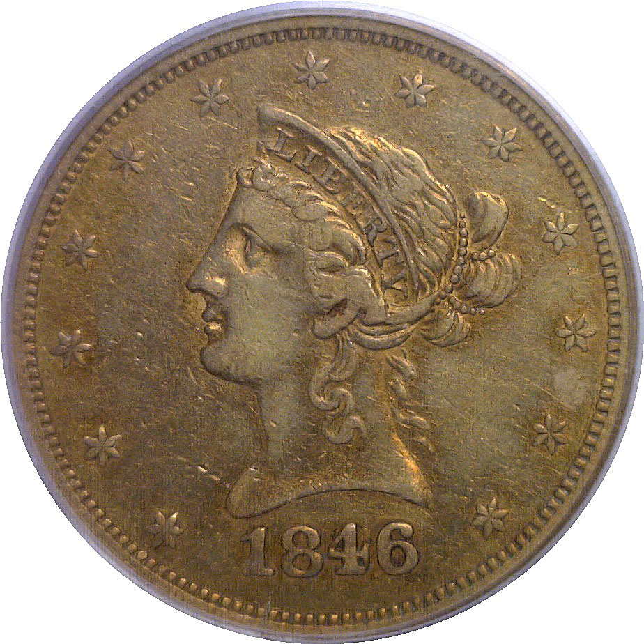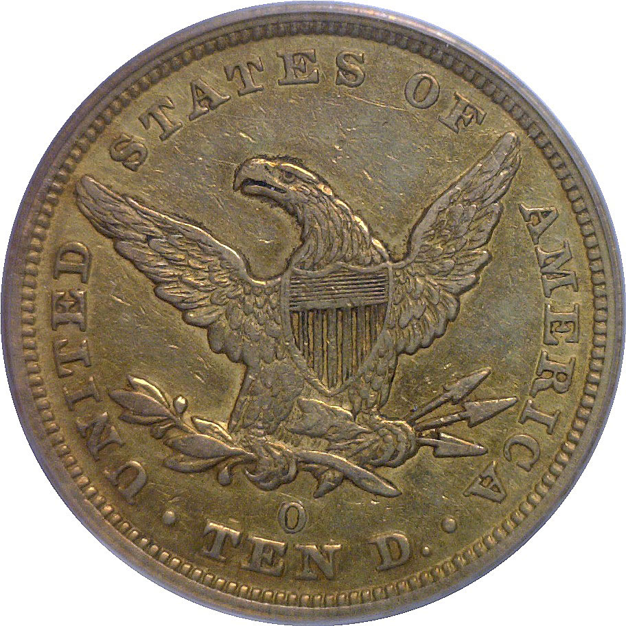 Well detailed with original antique-gold surfaces. An attractive example of this early New Orleans Mint ‘Ten’ and housed in an old green label holder.