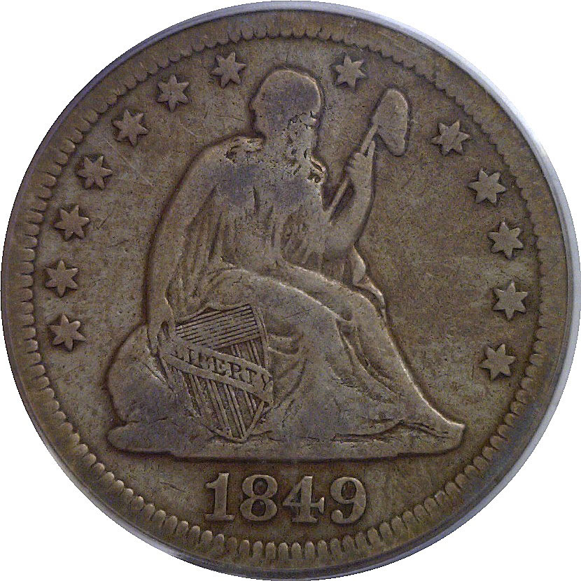 One of the key dates in the series and scarce in any grade. PCGS estiamtes the mintage at 16,000 coins with 450 survivors in all grades, raw and slabbed. This is an outstanding coin for the grade with smooth problem-free surfaces that are a pleasing medium gray color. The detail is solid for a Fine-12 with a bold LIBERTY and light even wear throughout.