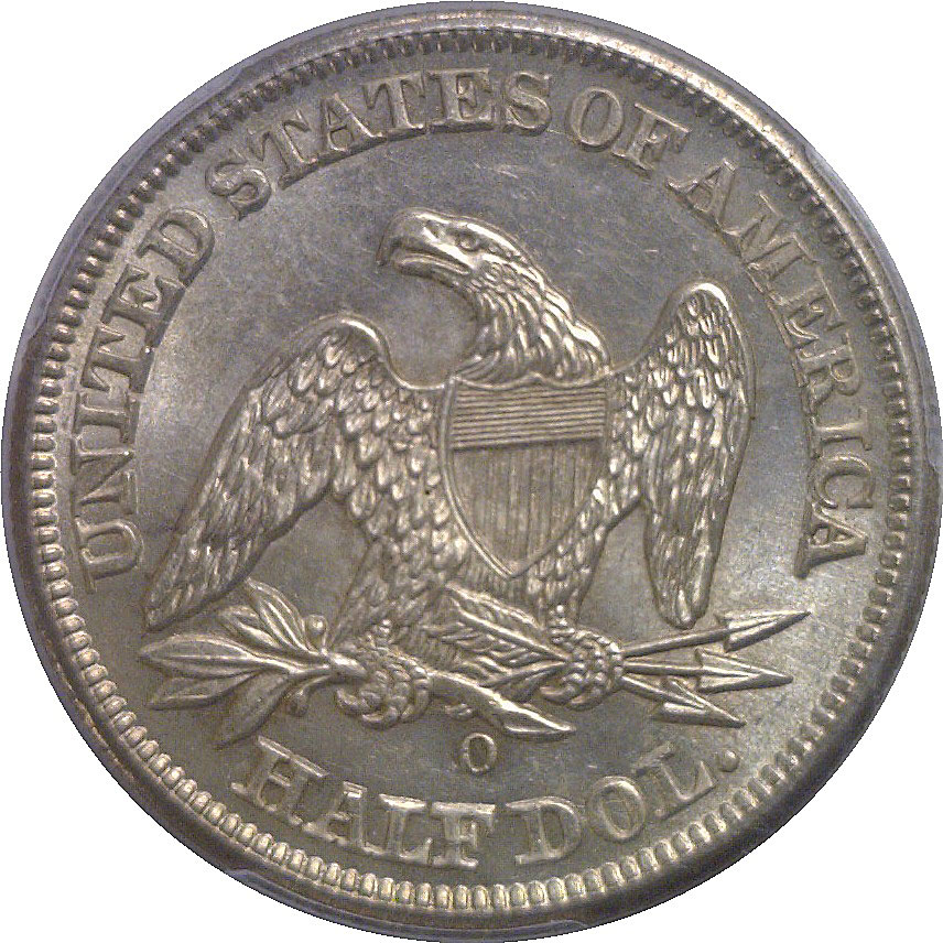 Satiny white luster and a sharp strike, with just minor marks, but nothing of significance that distracts from this coin’s excellent eye appeal. Early ‘O’ Mint halves are hard to find with this kind of flash!