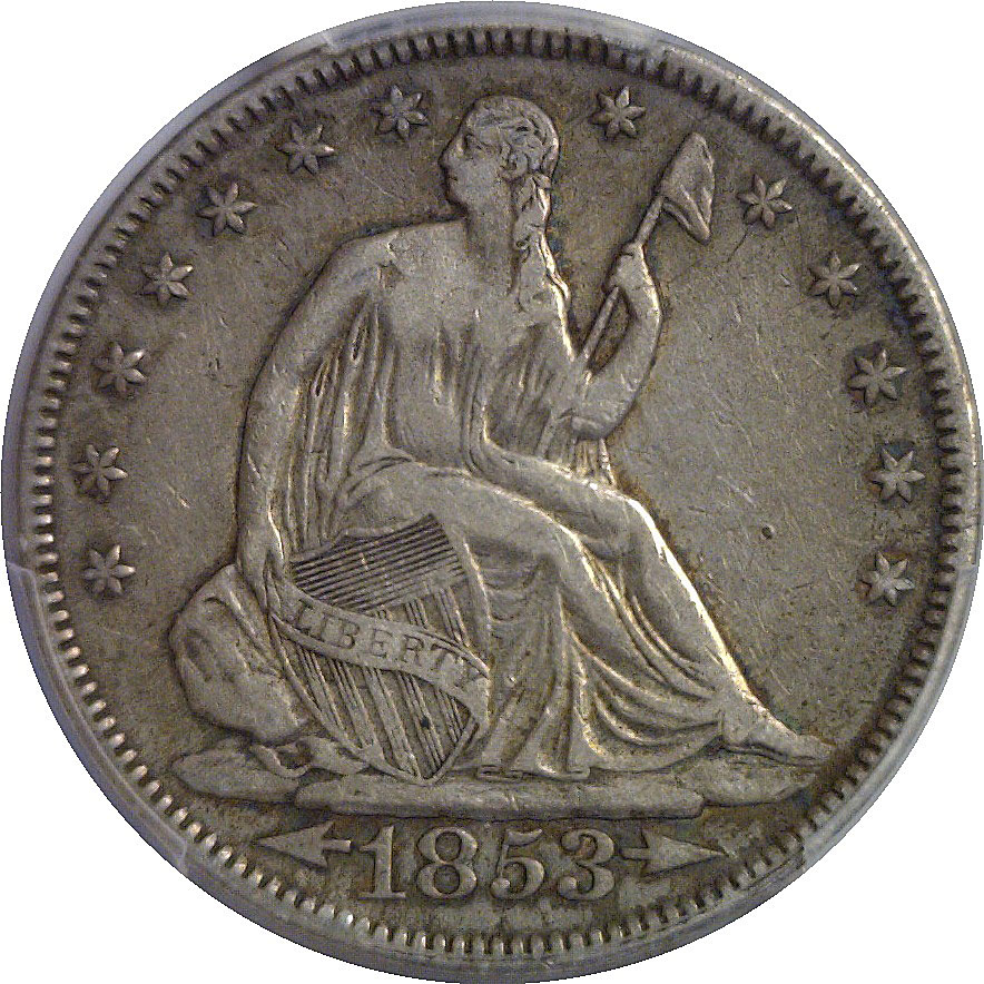 1853 Arrows & Rays Seated Liberty Half Dollar PCGS XF-40