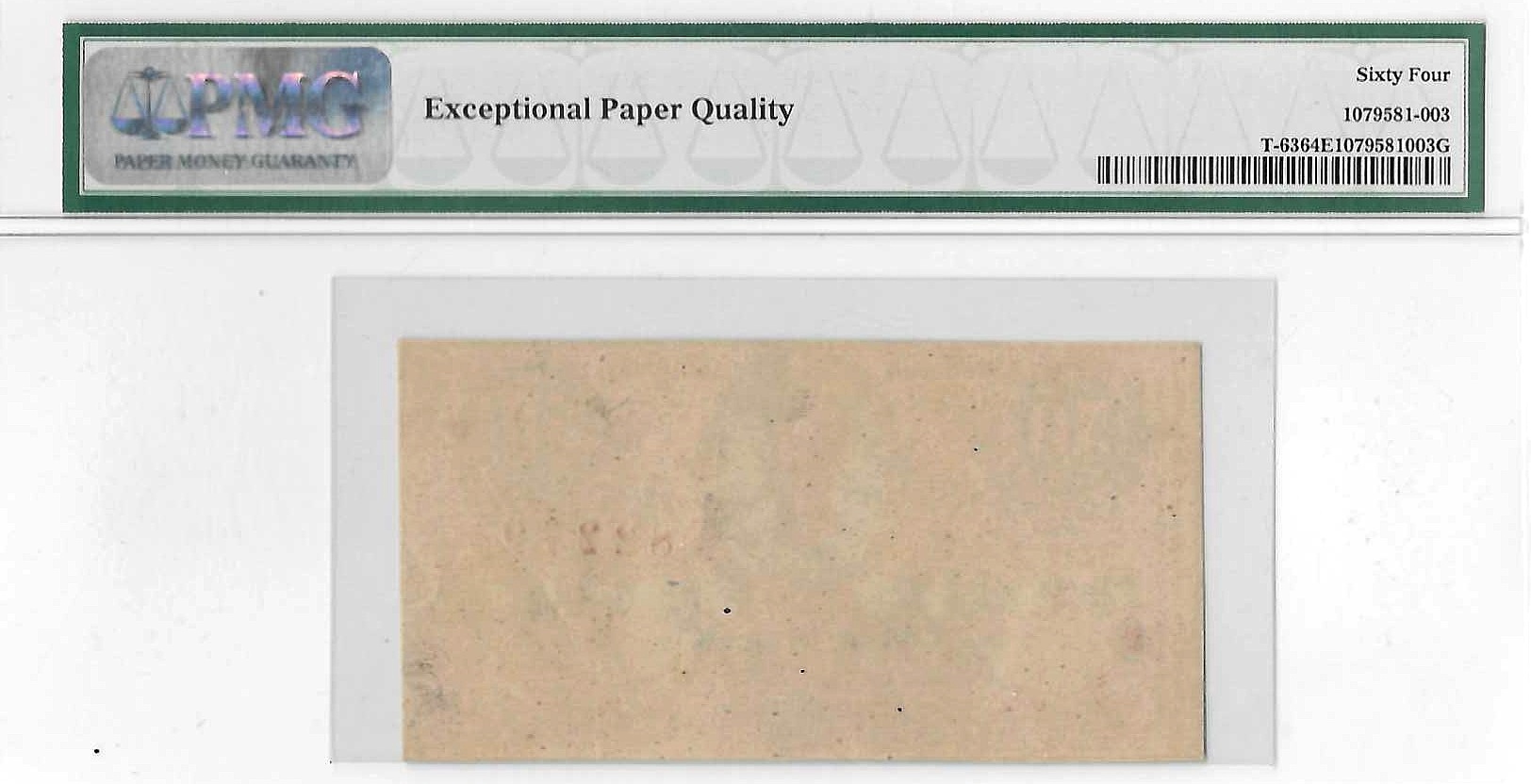 1st Series. Pink paper. Bust of Jefferson Davis with red stamp serial number. First fractional currency issue of the Confederate States.