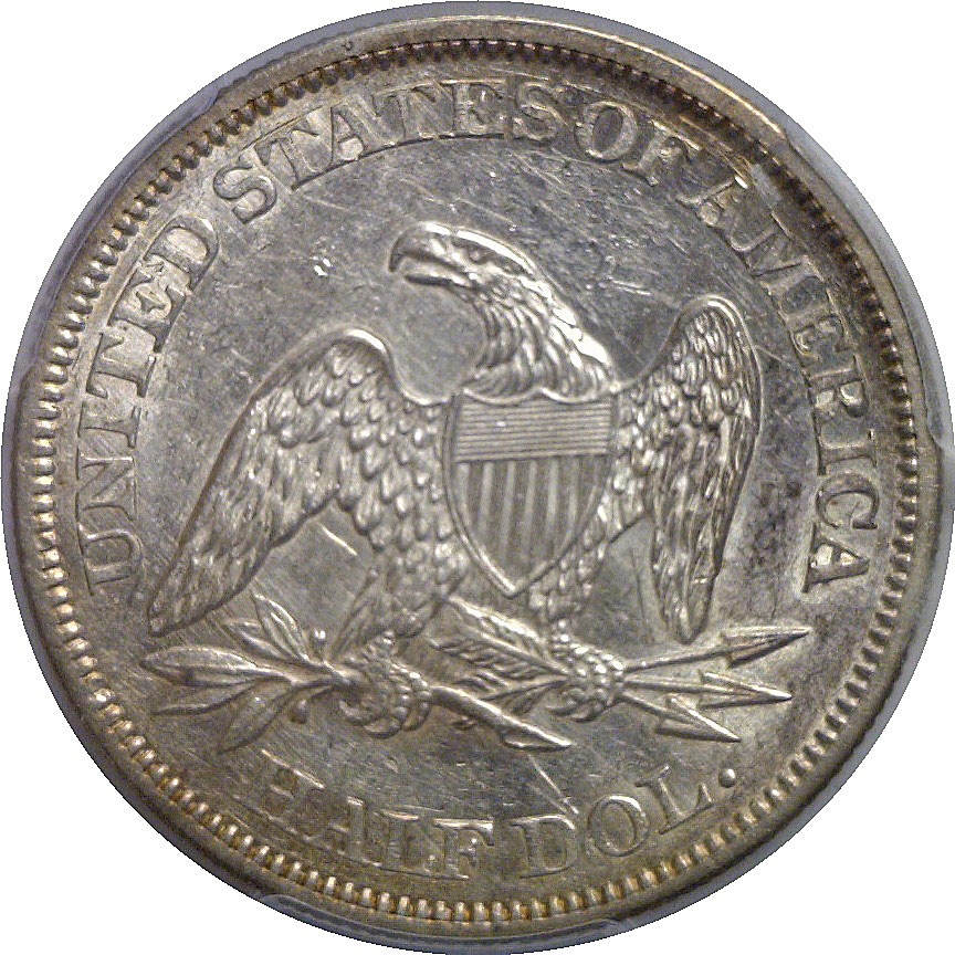 This handsome Civil War–era Seated Liberty Half Dollar offers strong visual appeal with light, even wear and ample remaining luster and detail. Liberty’s figure is sharply rendered, with clear definition in the shield, drapery folds, and stars. The reverse eagle is equally well struck, showing crisp feathers and a bold shield. A well-preserved coin with outstanding eye appeal.