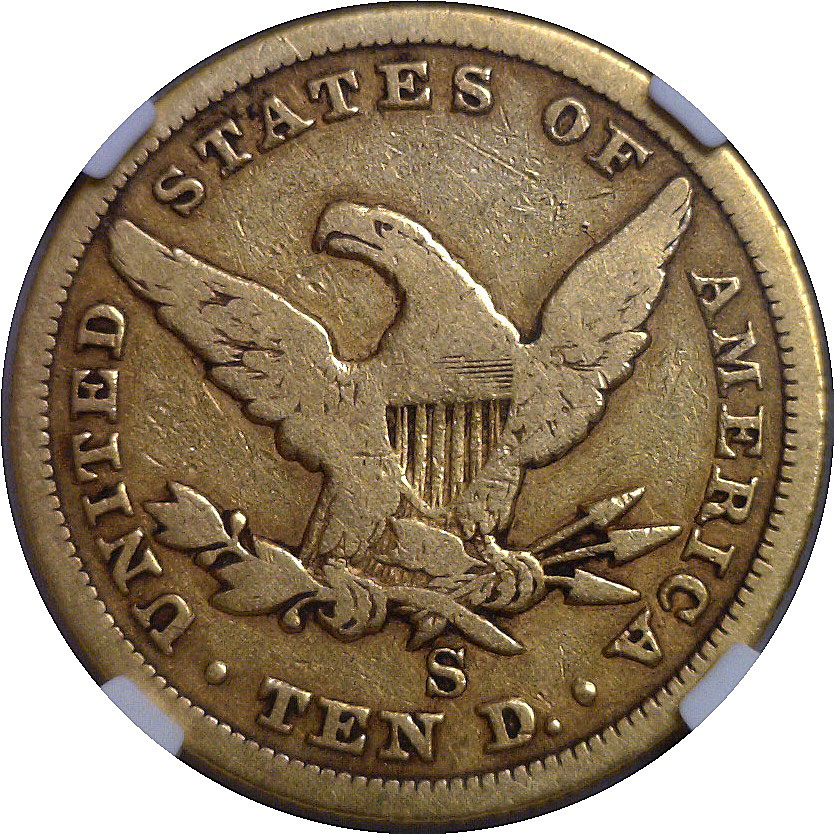 One of the rarest dates in the series with an estimated 25 to 35 coins known. This example displays honest, even wear with all major design elements clearly defined. Liberty’s portrait remains bold, while the reverse eagle shows strong outlines. Surfaces exhibit a warm, natural gold patina consistent with age and circulation, with no major distractions. An appealing survivor despite being well-worn.