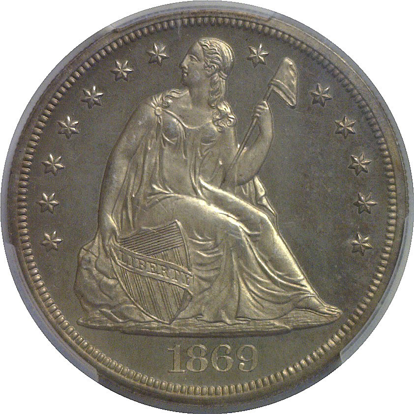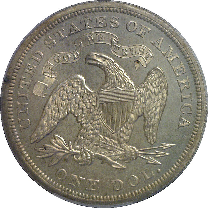 A scarce and highly desirable early Proof Seated Liberty Dollar which saw a mintage of just 600 coins. The surfaces exhibit attractive light silver and pale champagne toning, with reflective proof fields and light frost on the devices creating a subtle cameo-like contrast. Outstanding for the grade with no hairlines and minimal contact marks.