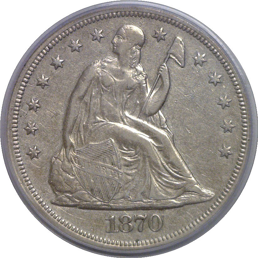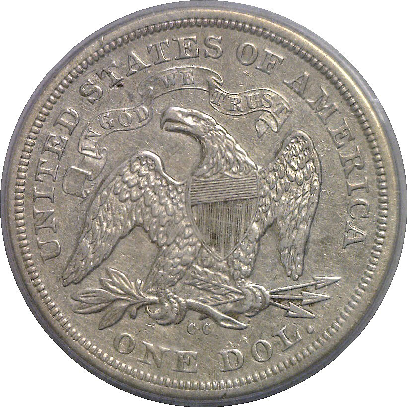 A very scarce issue from the first year of production at the Carson City Mint. Just 12,462 coins minted. This example displays strong detail and pleasing overall eye appeal. Liberty is well defined with clear gown folds, shield lines, and bold stars, while the reverse eagle shows sharp feathering and a crisp shield. Light, even circulation wear is complemented by soft silver-gray toning and traces of original luster in protected areas.