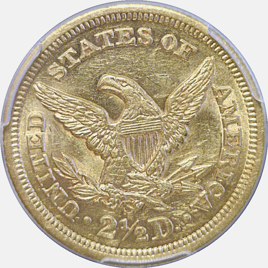 A better date with a mintage of just 22,000 and just a handful of mint state survivors. This is a nice borderline uncirculated coin with bright lustrous surfaces and just a trace of high-point friction.