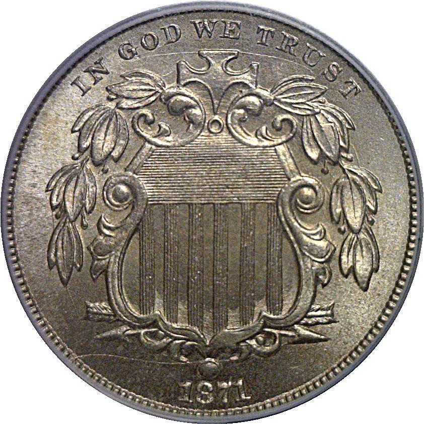 CAC. A beautiful Gem example of this late-date Shield Nickel, certified MS65 by PCGS and approved by CAC for superior quality. Both obverse and reverse surfaces are satiny and brilliant, displaying strong luster and sharp detail in the shield lines, stars, and wreath. The coin’s frosty surfaces are remarkably clean for the issue, with only the most trivial ticks visible under magnification. Housed in an old green label holder.