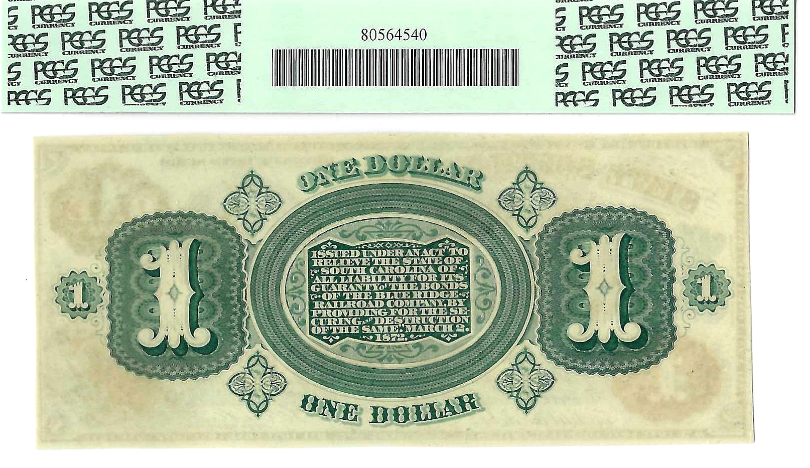 Cr. 3. Well centered with bright green underprint and fancy reverse. The central vignette is that of a slave driving an oxen cart carrying cotton. Two children and a bee are captured in an oval framed portrait.