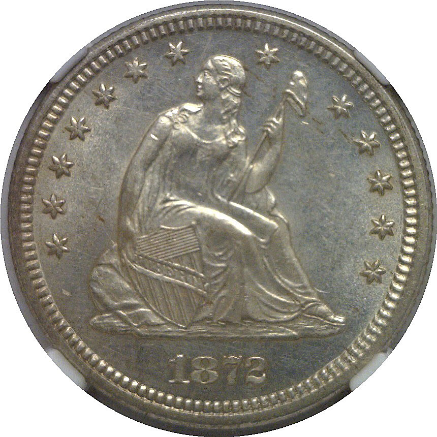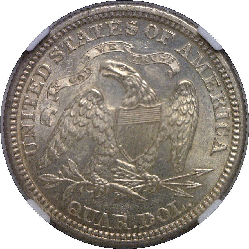A modest 182,000 minted with just a handful of mint state coins graded at both services. This piece offers satiny luster and sharp definition, with nearly full detail visible in Liberty’s gown and the eagle’s feathers.