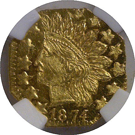Octagonal Indian Head. R-3. Sharply struck with extremely flashy bright gold surfaces.