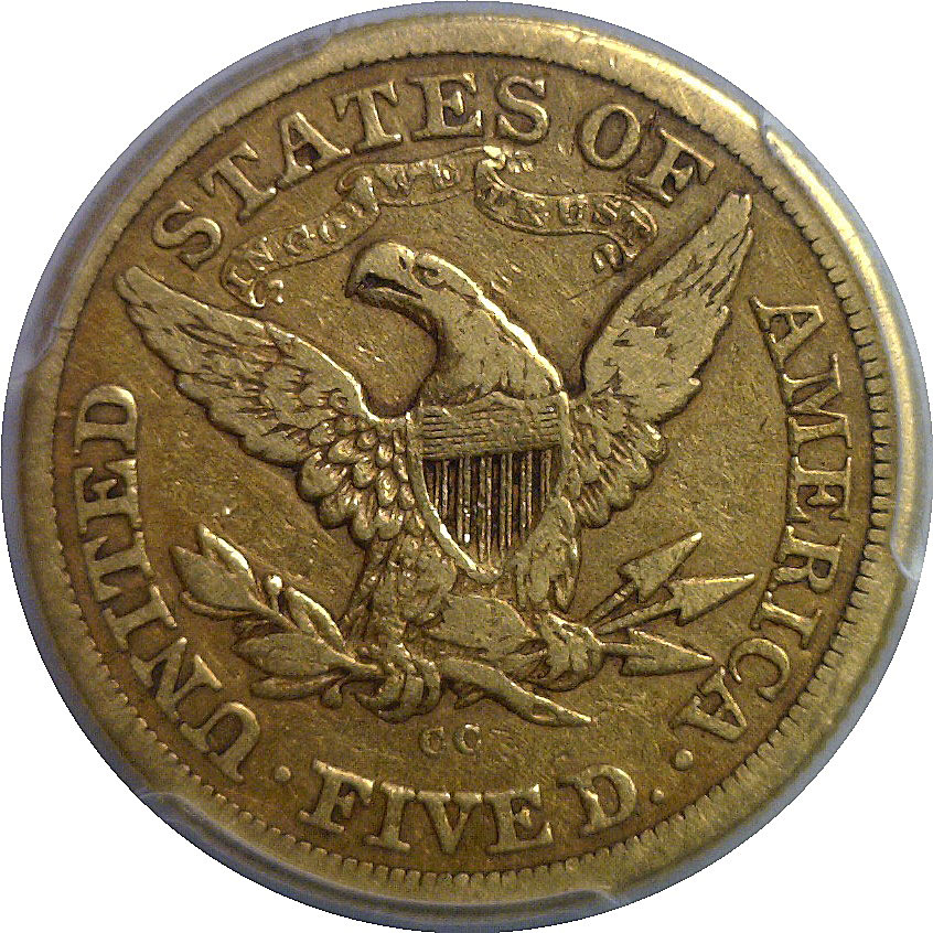 CAC. Well detailed with attractive, problem-free surfaces. All early Carson City half eagles are rare with this issue having a mintage of just 21,198.