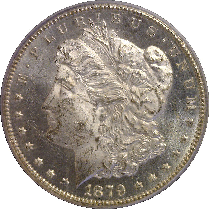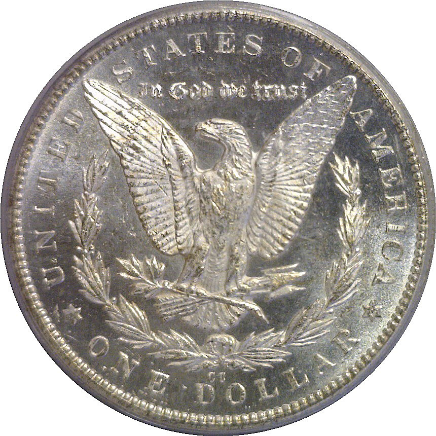 CAC. A desirable scarce Carson City dollar with strong proof-like reflectivity and crisp frosty devices that create bold contrast on both sides. Light chatter accounts for the grade, but the eye appeal is enhanced by deep, mirrored fields and the CAC approval confirms the solid quality for the grade. Housed in an old green label holder.