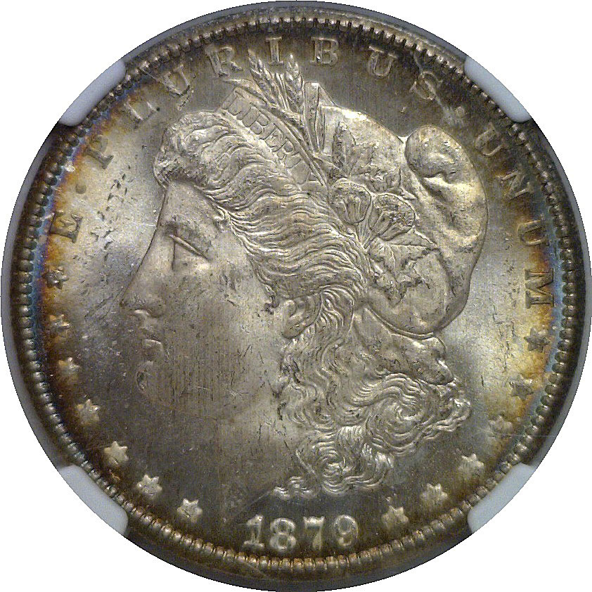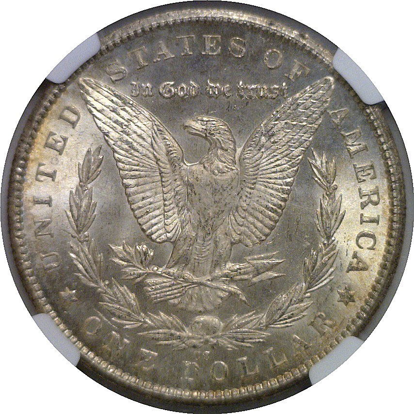 Perfect ‘CC’. Highly attractive, displaying strong overall strike quality, with well-defined hair detail above Liberty’s ear and crisp feathering throughout the eagle’s wings and breast. The frosty mint luster remains vibrant and undisturbed, flowing evenly across both obverse and reverse. The surfaces are notably clean for the grade, with only minor, well-scattered marks visible under magnification. A soft silver-gray patina dominates, complemented by subtle peripheral warmth that enhances depth and eye appeal while also establishing the coin’s originality. A beautiful example of this scarce Carson City dollar.
