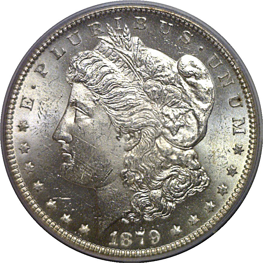 Reverse of 1878. Brilliant white surfaces with subtle touches of gold on the reverse. The luster is strong and the strike is razor-sharp. An attractive example and very desirable.