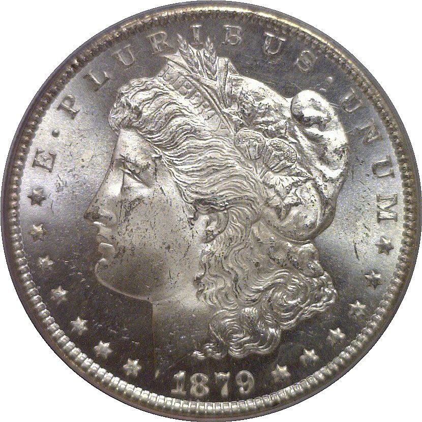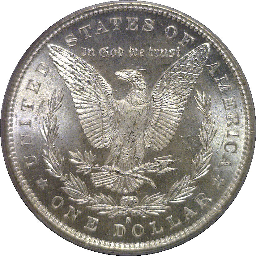 CAC. Bright, frosty luster blankets the surfaces, with sharp detail throughout Liberty’s hair and the eagle’s feathers. The fields are clean for the grade, and overall eye appeal is strong. Old green label holder.