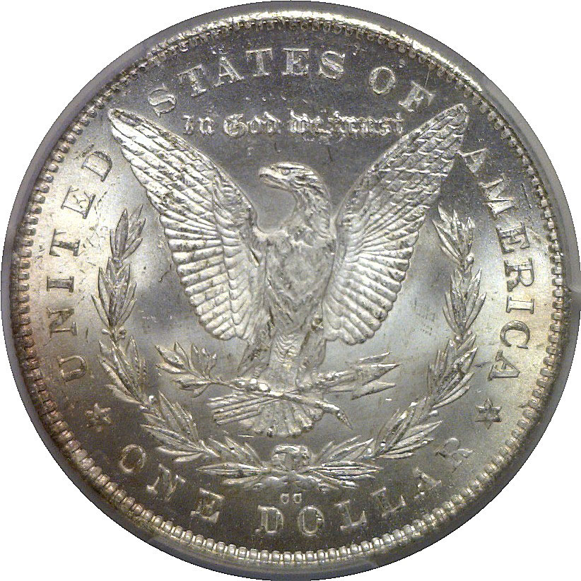 A scarce Carson City overdate with the Reverse of 1878, featuring the reverse eagle with parallel top arrow feathers. Sharply detailed with strong frosty luster and attractive choice surfaces. Well-defined hair curls and stars on the obverse complement a crisp reverse strike. An impressive Gem with very few marks, well within the parameters of the grade.