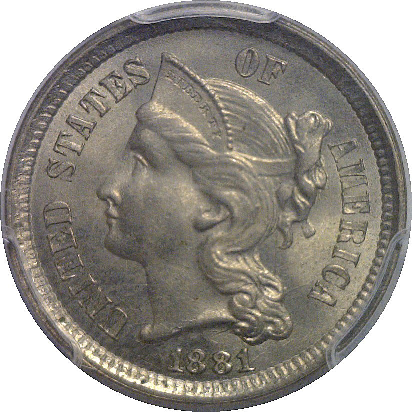 1881 Nickel Three Cent PCGS MS-65