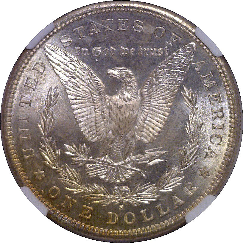 An exceptional Superb Gem example exhibiting blazing, frosty luster and razor-sharp strike throughout. The surfaces are remarkably clean, with only the faintest ticks visible under magnification, and are enhanced by a soft halo of peripheral gold and pastel toning. Outstanding eye appeal and technical quality define this lofty MS67+ Morgan Dollar.