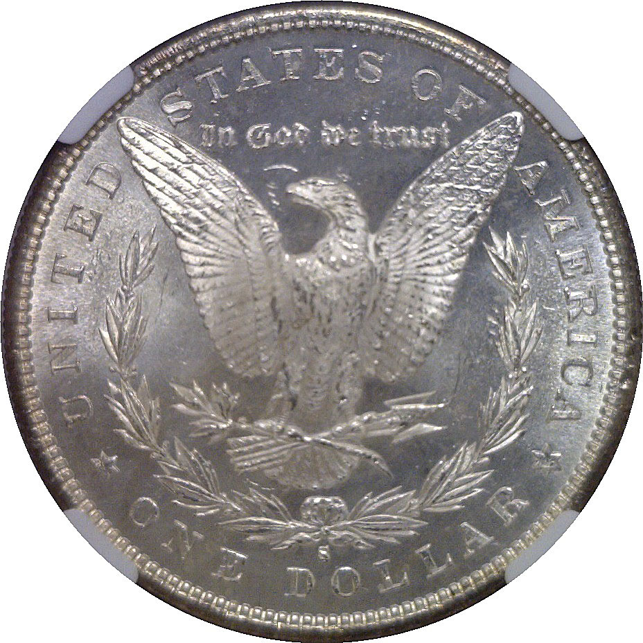 Brilliant, frosty-white surfaces exhibit exceptional luster and razor-sharp strike detail throughout. Nearly pristine fields and outstanding eye appeal define this high-end example of a popular date.