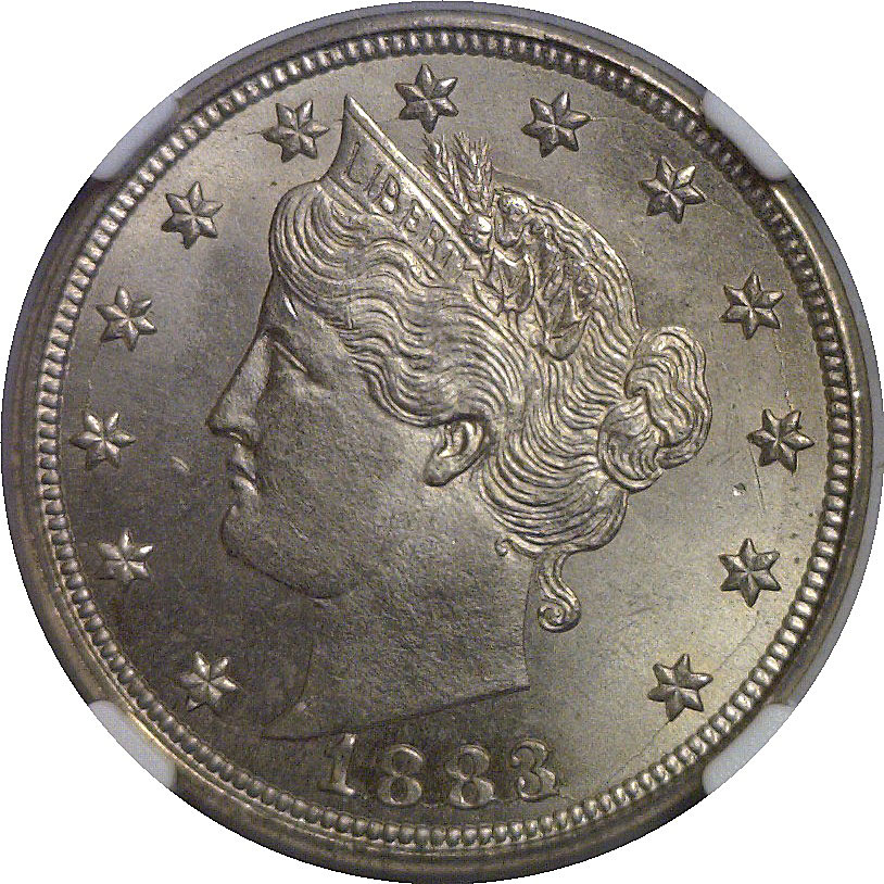 Sharply struck with lustrous nickel-gray surfaces.