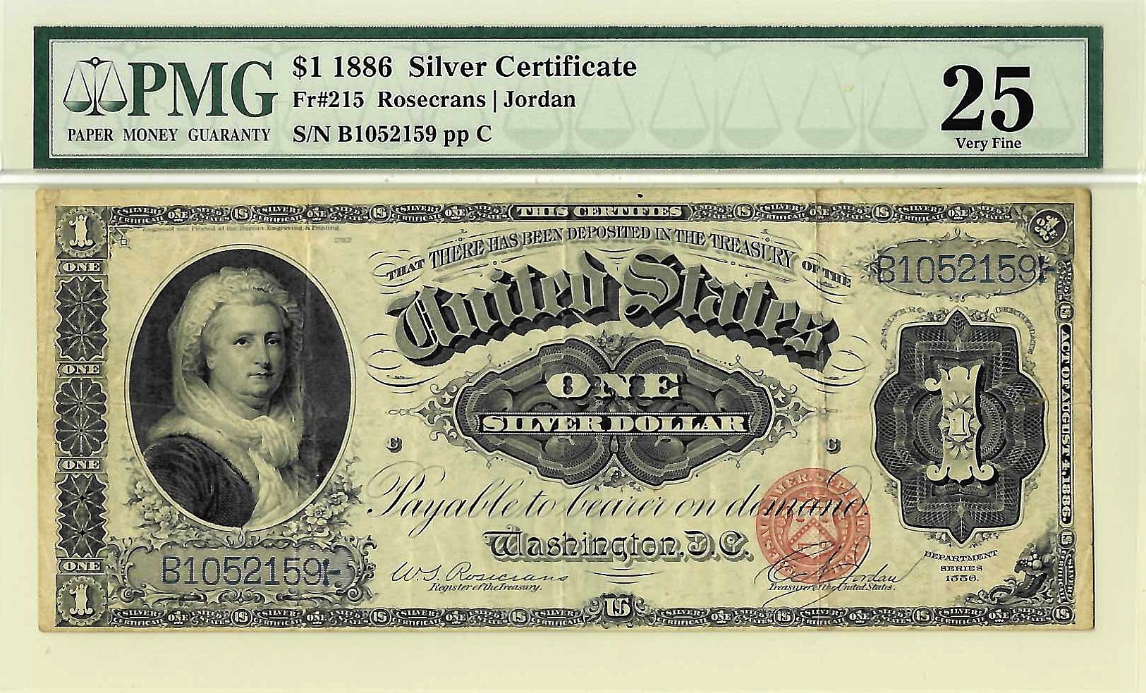 1886 $1 Silver Certificate Fr-215 PMG VF-25