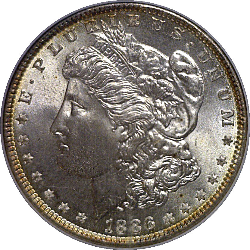 Sharply struck with satiny white luster except for a delicate gold ring at the very edge of this Superb Gem. The surfaces are nearly mark-free with Liberty’s cheek being particularly clean.