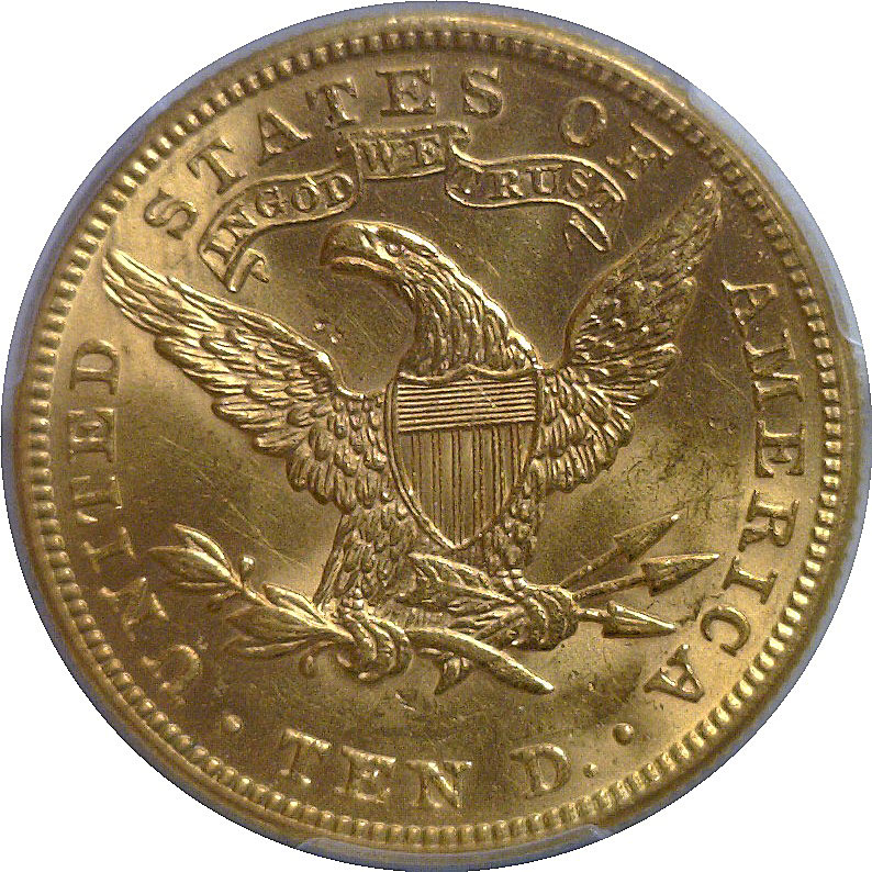 A better date with a mintage of just 53,600. This is a beautiful coin for the grade with very few marks and a clean cheek. Both sides are sharply struck and display rich original satiny mint luster.