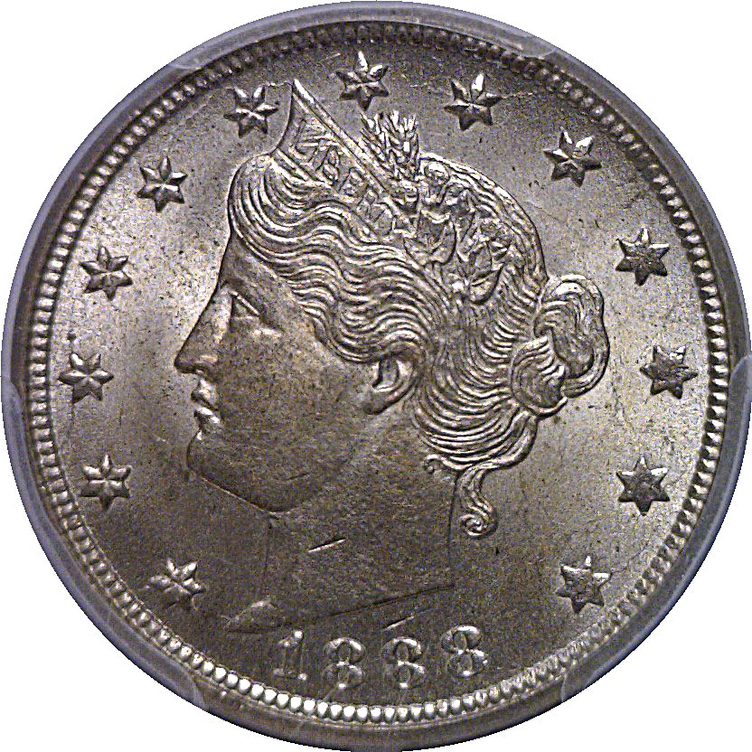 Well struck with flashy white luster and just a few marks, consistent with the grade.