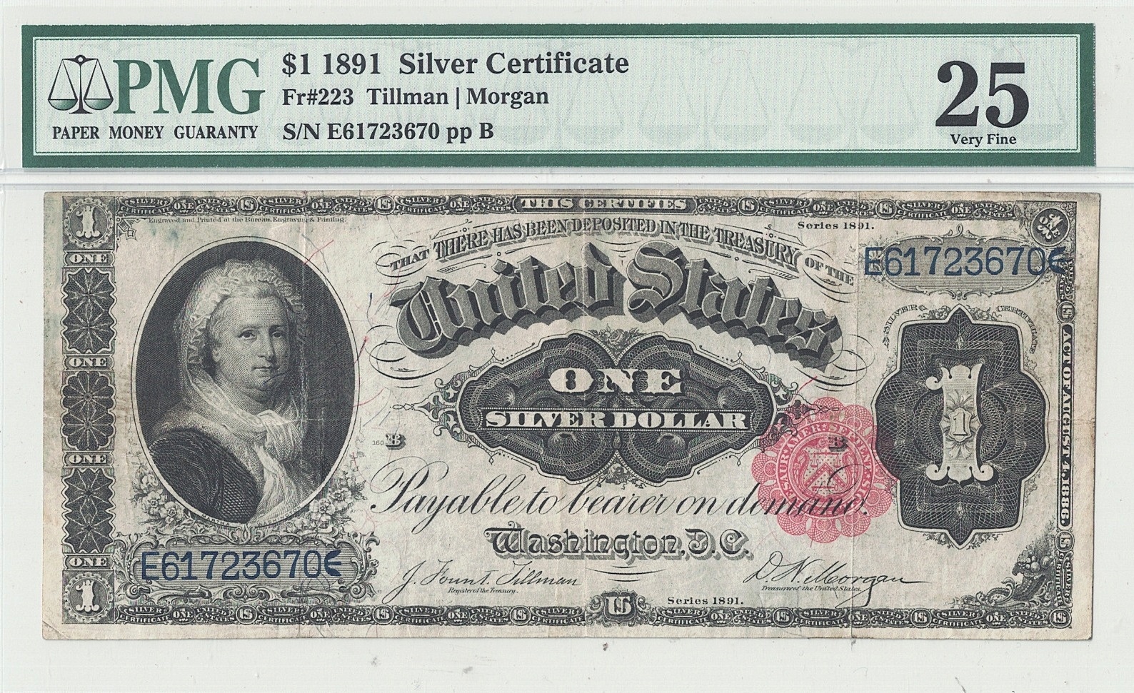 1891 $1 Silver Certificate Fr-223 PMG VF-25