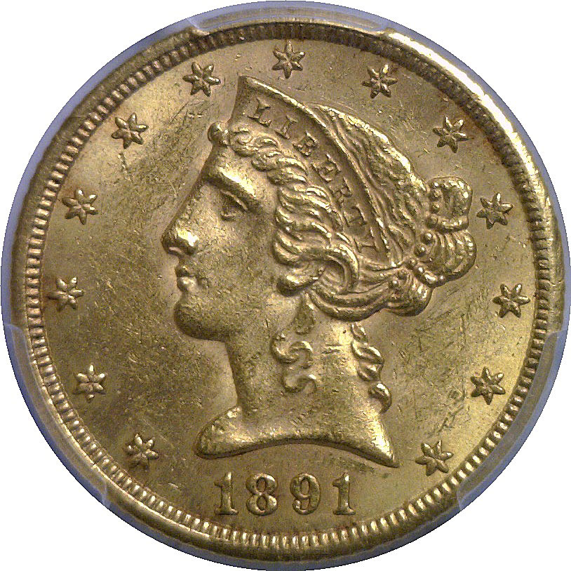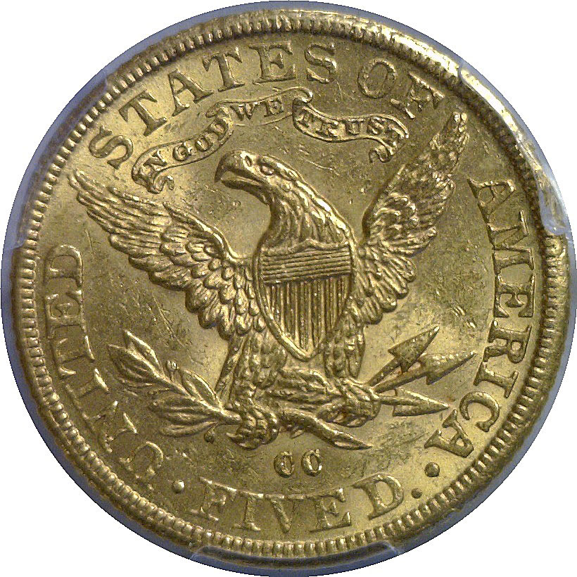 A pleasing example of this popular Carson City ‘FIVE’, with satiny luster and just minor marks, consistent with the grade.