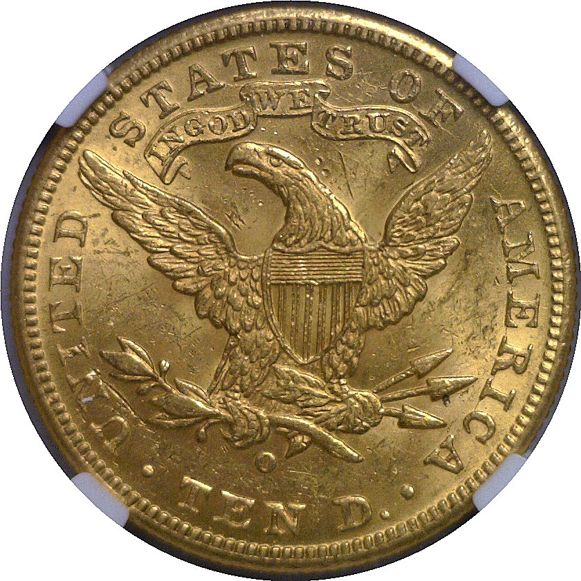 Bold overall definition with strong detail to Liberty’s portrait and star centers. The reverse eagle is well struck, with strong feather detail, shield lines, and legends. Surfaces exhibit original gold color with scattered contact marks consistent with the grade.
