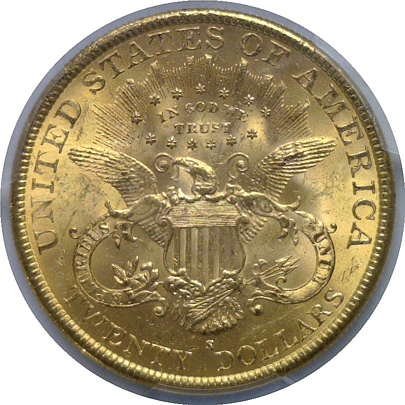 This better San Francisco issue displays rich golden luster with warm orange-gold highlights, sharp central definition, and well-preserved stars and devices. Light, scattered contact marks typical of the grade do little to detract from the overall strong eye appeal.