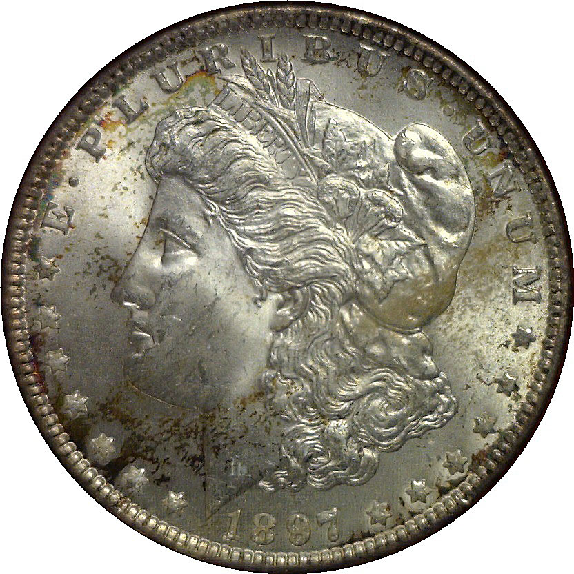 Paramount “Redfield Collection Mint State 65” holder. Well struck with a rich satiny white luster base and a brush of golden toning.