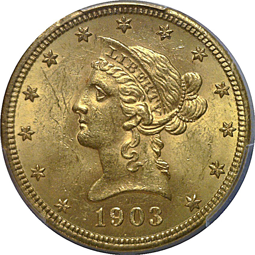 Rich yellow-gold luster and smooth fields for the grade. The strike is sharp, and light bag marks are minimal with no distraction to the eye appeal.