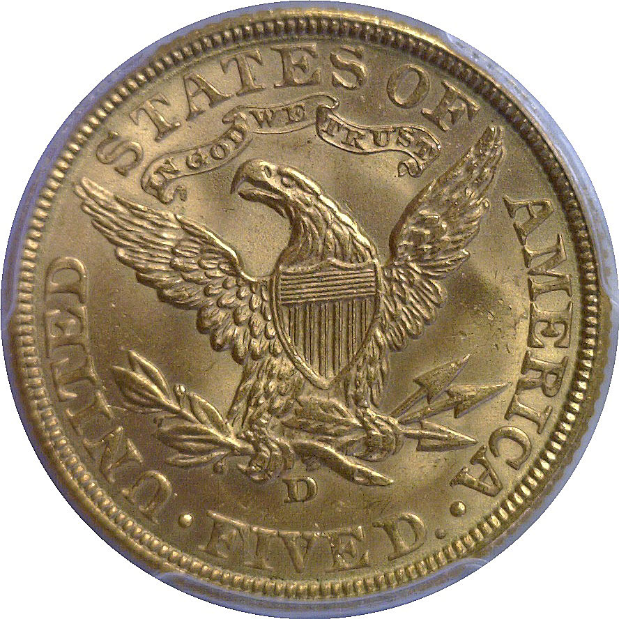 CAC. A beautiful Gem and the scarcer of only two $5 Liberty dates struck at the Denver Mint. Outstanding quality, glowing with rich satiny luster and exceptional surface preservation. The strike is bold throughout, and the CAC approval confirms its strong eye appeal and premium quality for the grade. A scarce and highly desirable Denver Mint Gem.