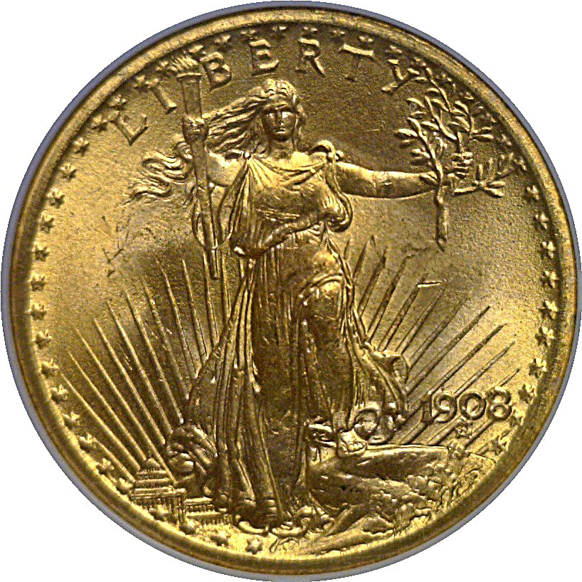 1908 No Motto $20 St. Gaudens NGC MS-65