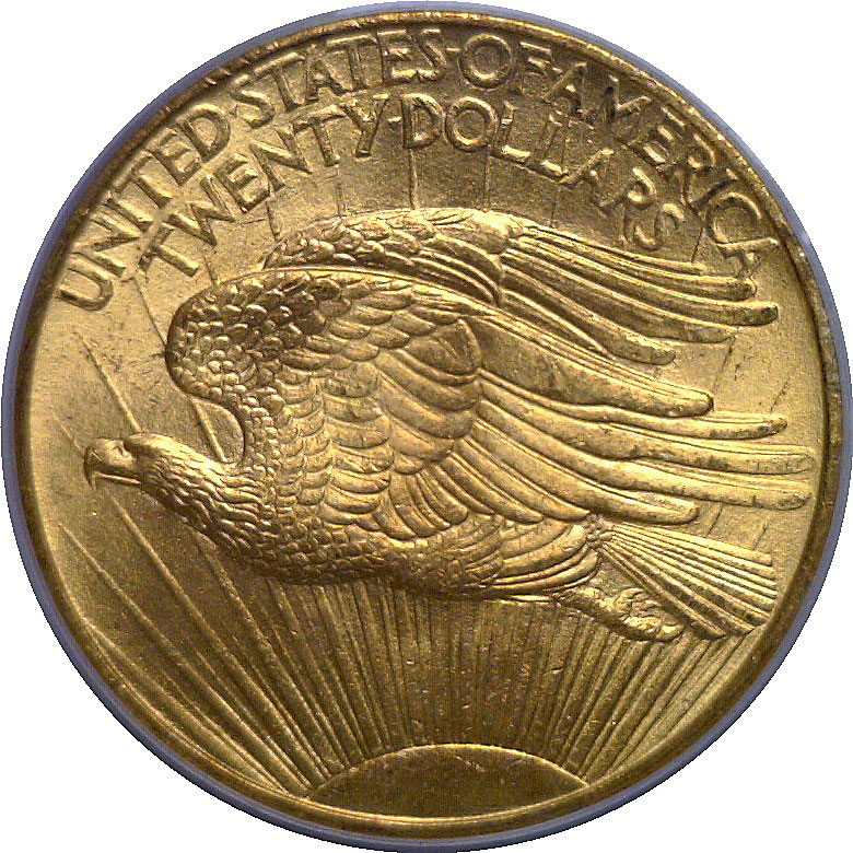CAC. A handsome near-Gem showcasing rich, original orange-gold luster with a soft, satiny texture across both sides. The strike is well-executed, with strong definition in Liberty’s figure and the eagle’s wing detail. Surfaces display only minor scattered marks consistent with the grade, none of which detract from the coin’s overall eye appeal. Old green label holder.