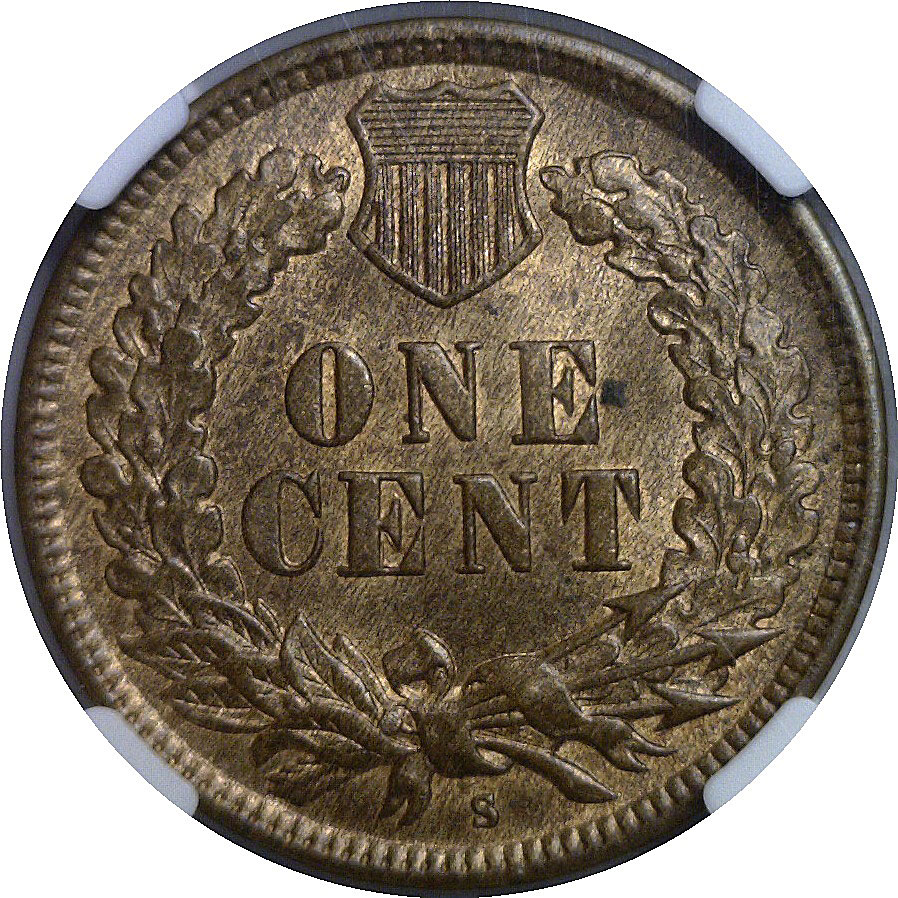Well struck throughout with 4 full diamonds. The surfaces are choice and mostly mint red, blending with soft brown.