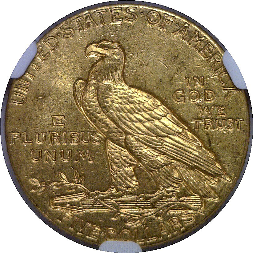 Sharply struck with rich, original gold color and satiny mint luster. Strong detail is evident throughout the headdress and reverse eagle, with only minor contact marks typical for the grade.