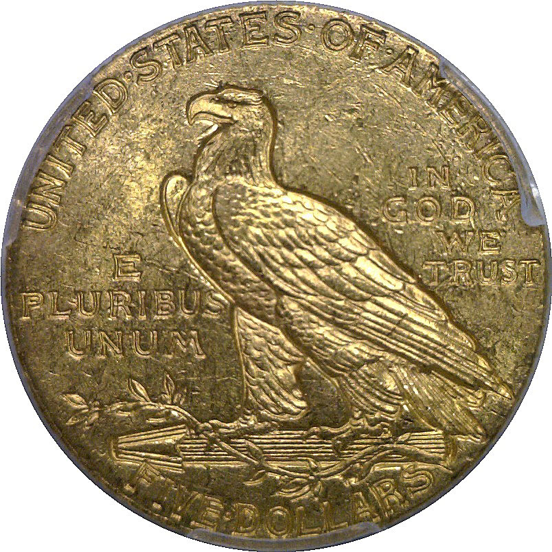 Rich golden surfaces display strong luster, with Liberty’s feathered headdress and the reverse eagle sharply defined. Light marks typical for the grade are present, but the coin retains pleasing eye appeal and bold detail throughout.
