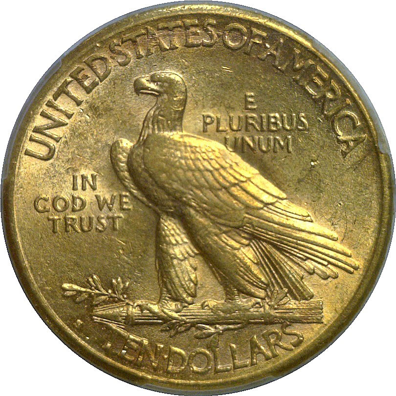 Brilliant orange-gold surfaces with abundant remaining mint luster and just a whisper of high-point friction. Sharply defined feather detail and a bold eagle reverse enhance the eye appeal. A scarce San Francisco issue, nearly Mint State and highly desirable in this borderline AU58 grade. A modest 66,000 minted.